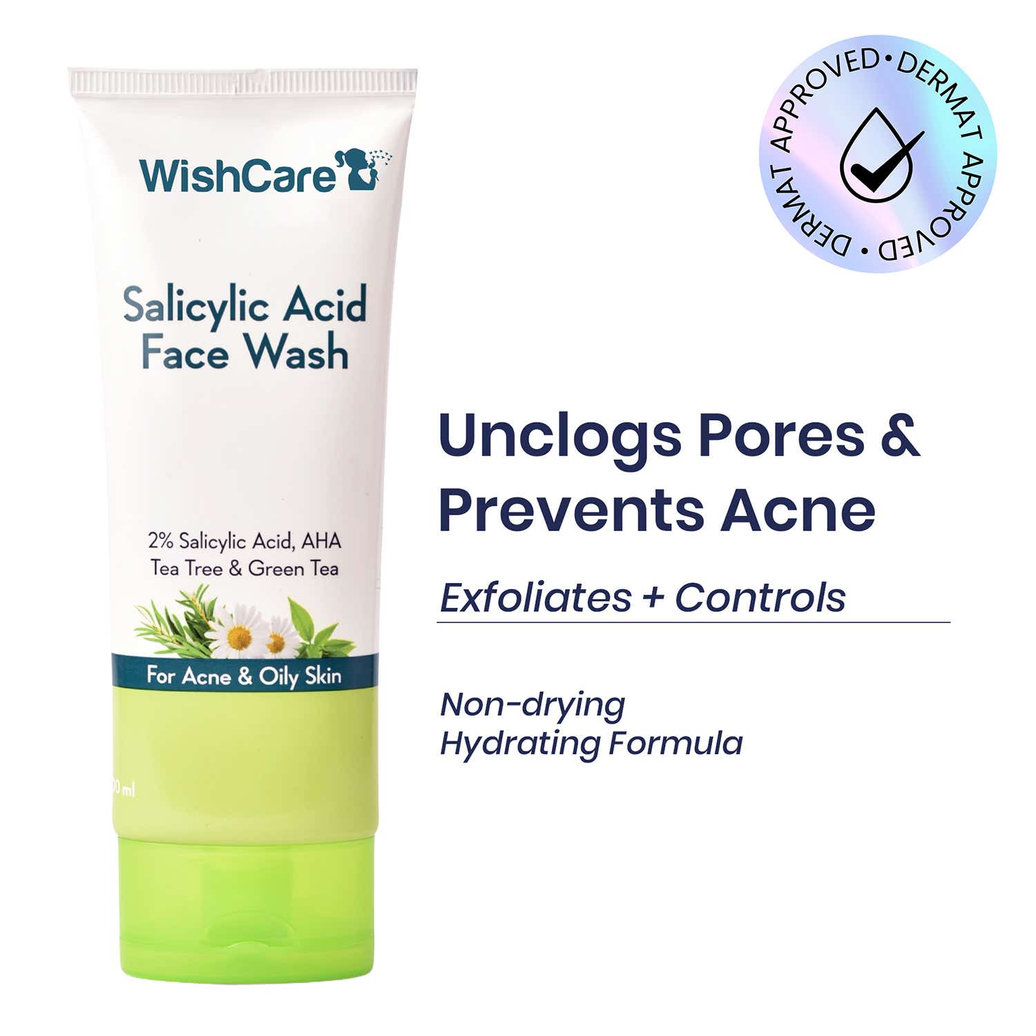 WishCare 2% Salicylic Acid Facewash with AHA Greentea&Tea TreeOil Control Reduce Sebum&Acne (100 ml)
